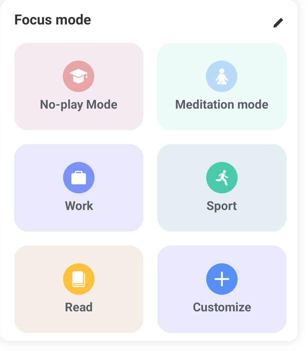 Настройте временные отрезки, когда Вы фокусируйтесь на работе, спорте, чтении, разрешите уведомления необходимых приложений в определённых периодах.