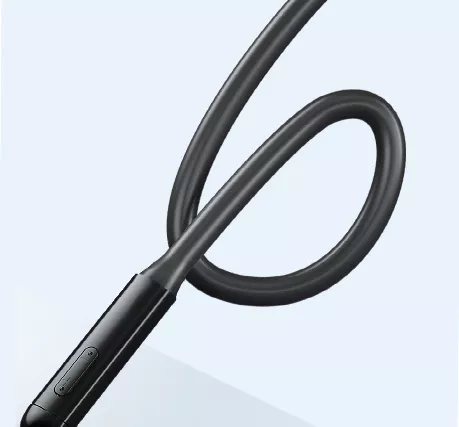 Наушники содержат магнит, прилипая друг к другу образуют замкнутый круг, что исключает возможность утери.