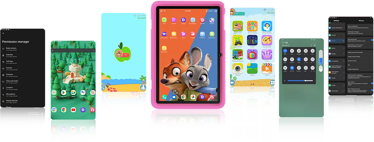 Owing to Android 12, Tab 8 Kids steps up privacy protection for users. The Permission manager delivers better control over app access to your data while Privacy dashboard clearly inform you of which apps recently used permission so that you have much less risk of personal data leak.
